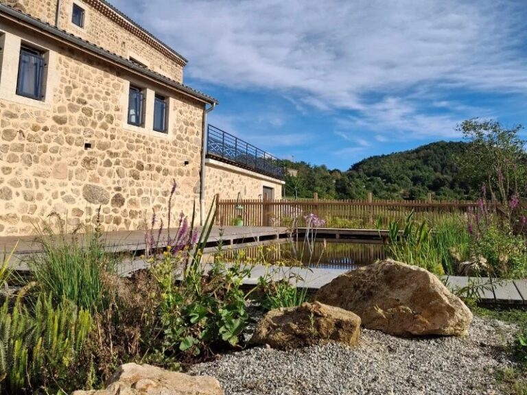 La source qui s’écoule toute l’année à l’abord du domaine prodigue des moments de silence et de pause. Ses jardins potagers et fruitiers invitent à la découverte et le bassin de baignade naturelle à revenir aux choses simples.