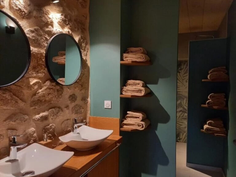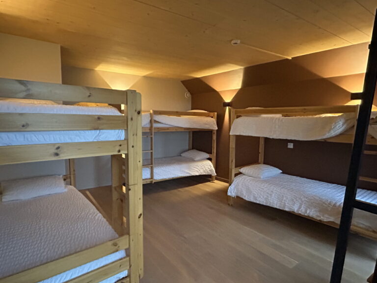 Le gîte est composé de 7 chambres privatives avec chacune sa salle de bains et d’un dortoir de 6 couchages avec une salle de bain partagée attenante.